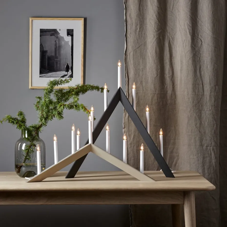 Der Arrow Kerzenhalter 64,5cm von Star Trading ist ein hölzerner Kerzenhalter mit abgeschrägten Formen, der eine wundervolle Weihnachtsatmosphäre im Haus verbreitet. Dieser moderne Adventsleuchter verfügt über sieben Lichtquellen, welche ein warmes Licht mit einem hohen Gemütlichkeitsfaktor ausstrahlen. Die Lichtquellen sind im Lieferumfang enthalten.