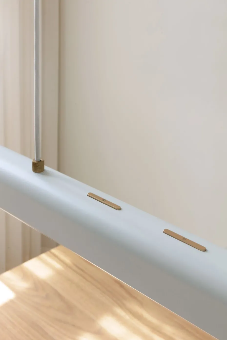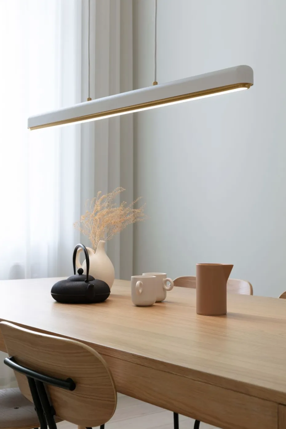 Die Hazel Branch Pendelleuchte 100cm von der dänischen Marke Umage wurde von Jacob Rudbeck entworfen. Bei dem Design schafft die Kombination der Materialien und Details einen schönen und schwebenden Ausdruck. Die Lampe besteht aus Aluminium, Stahl und Polystyrol und verfügt über ein integriertes dimmbares LED-Panel mit einer Schutzabdeckung, die das Licht schön verteilt, ohne zu blenden. Auf der Oberseite des Panels befinden sich Tasten, mit denen Sie sowohl die Helligkeit als auch die Farbtemperatur einstellen können. Die Hazel Branch hat einen industriellen, aber eleganten Ausdruck und sorgt für eine gute Beleuchtung über dem Esstisch oder der Arbeitsfläche.
