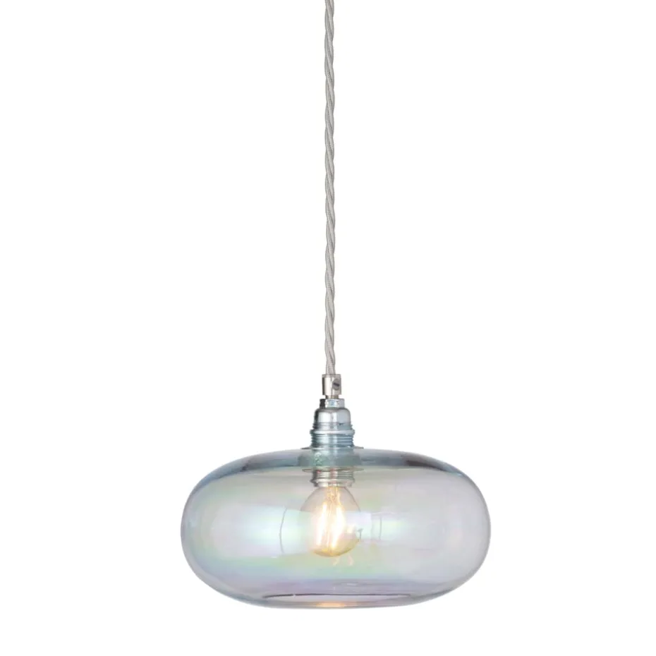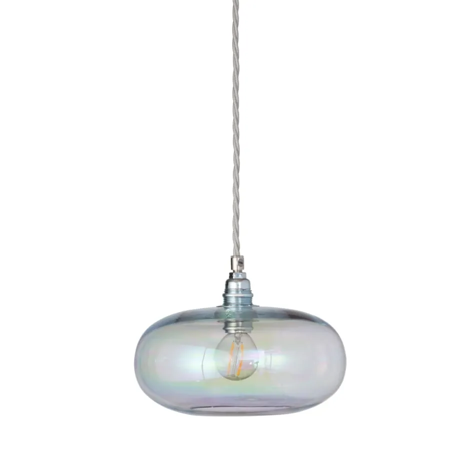 Horizon ist eine ästhetische Leuchtenserie der Marke Ebb & Flow, die einen spannenden Kontrast aus filigranem Lampenschirm aus mundgeblasenem Glas und robuster Lampenfassung aus Metall zeigt.