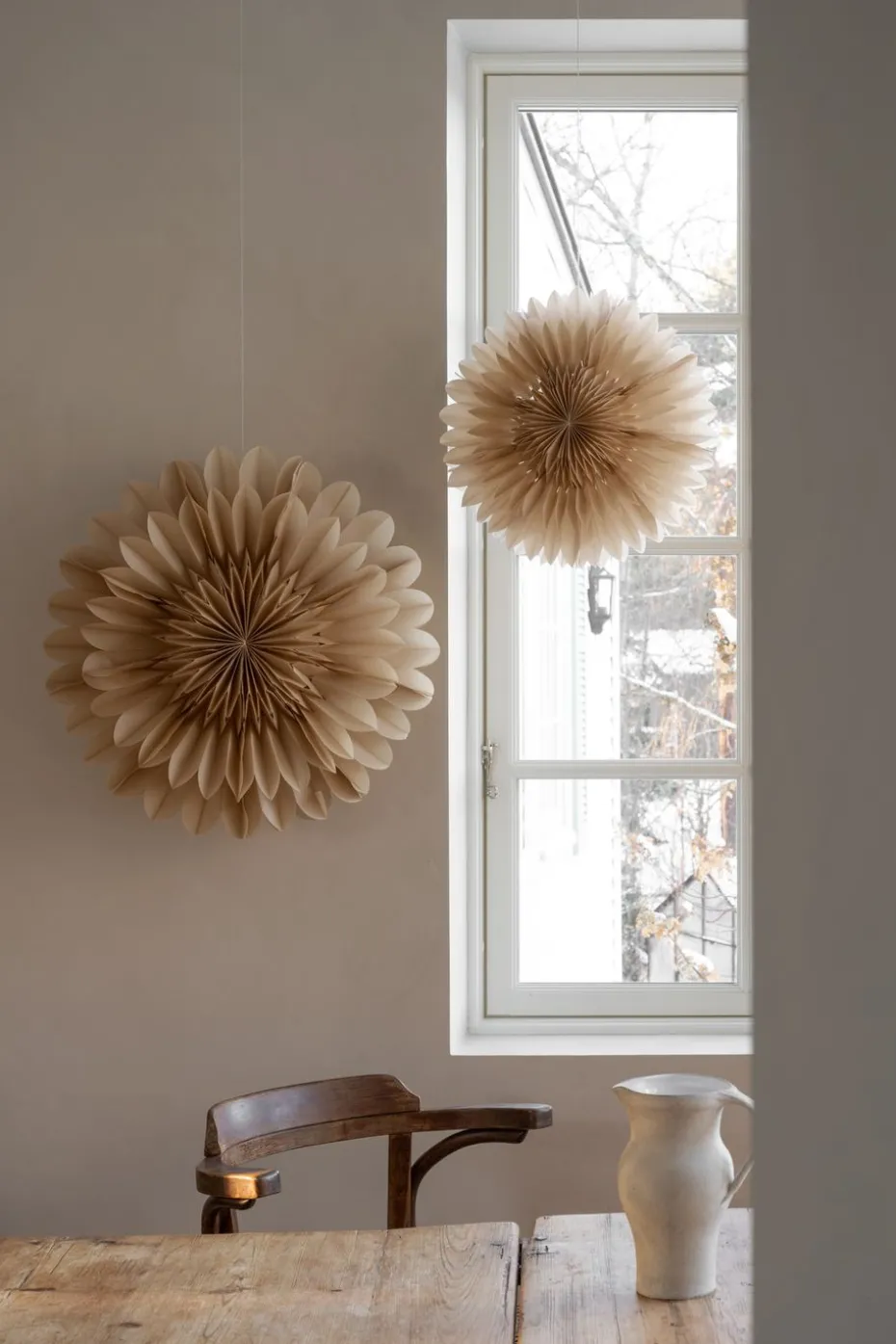 Der prächtige Lotus Adventsstern Ø 44 cm von Watt & Veke wurde aus Pappe mit mehreren Lagen sich überlappender Zacken und abgerundeten Spitzen gefertigt. Der Stern verbreitet eine herrliche Weihnachtsstimmung in der Wohnung und wird auf dem Bücherregal ebenso zum stilvollen Blickfang wie im Fenster.