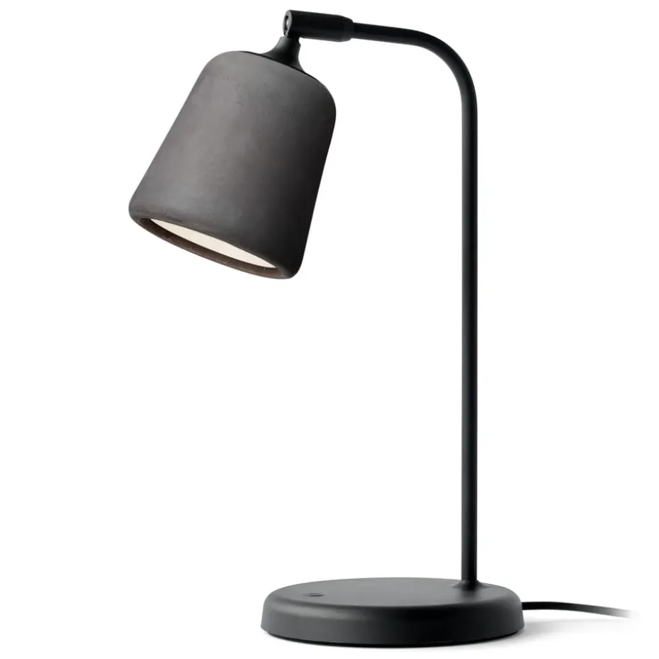 Die Material Tischleuchte von New Works ist eine dimmbare Lampe, bei der das Material des neigbaren Lampenschirms im Mittelpunkt steht. Wählen Sie zwischen einer Vielzahl verschiedener Materialien, von den warmen Tönen von Terrakotta, Kork und Eiche bis hin zu dem kühleren und raueren Beton und weiter zu exklusivem Marmor in verschiedenen Farben – nur um einige zu nennen! Dank der schwarzen, pulverbeschichteten Stahlbasis im minimalistischen Design erhält der Schirm die Aufmerksamkeit. Die praktische Drei-Stufen-Dimmerfunktion ermöglicht es Ihnen, die Lichtintensität für den jeweiligen Moment nach Wunsch anzupassen. Die Tischleuchte wurde von dem dänischen Designerduo Nørgaard-Kechayas entworfen und passt gut an viele Stellen im Haus, zum Beispiel auf den Schreibtisch, den Nachttisch und den Beistelltisch. Werfen Sie einen Blick auf alle verschiedenen Materialien, die die Serie zu bieten hat, und kombinieren Sie sie idealerweise mit der Pendelleuchte und der Wandleuchte für einen einheitlichen Stil und ein besonders ausdrucksstarkes Zuhause.