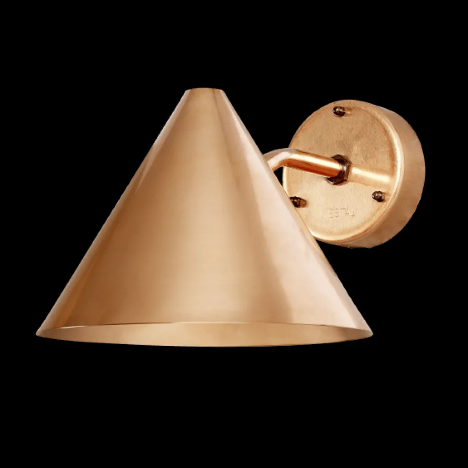 Nach unten gerichtete Wandleuchte mit strahlendem Lichtbild. Messing. Die Leuchte hat eine E27-Fassung. Das Rückenteil hat zwei Ein- und Ausgänge und eine Schnellanschlussklemme. Geeignet für den Einsatz in privaten und öffentlichen Umgebungen.