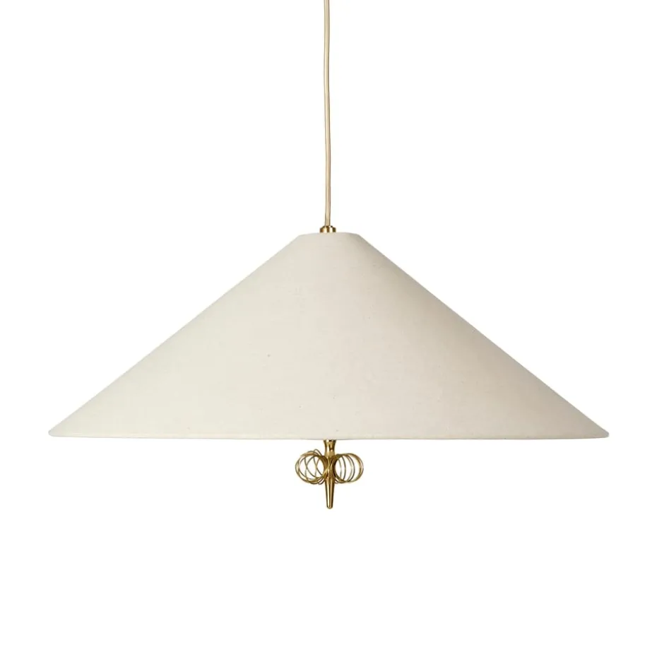 Die 1967 Pendelleuchte von Gubi ist eine Leuchte mit einem kegelförmigen Schirm aus Canvas, der ein angenehmes Licht im Raum verteilt. Das schöne Messingdetail am unteren Rand des Schirms verleiht der ansonsten schlichten Form zusätzlichen Charakter.