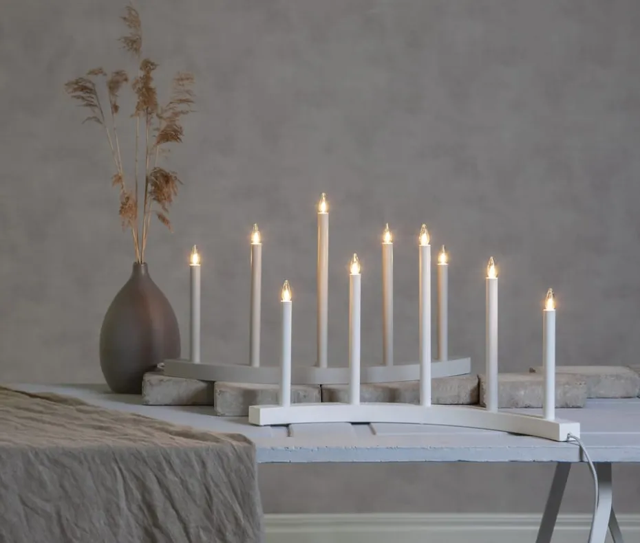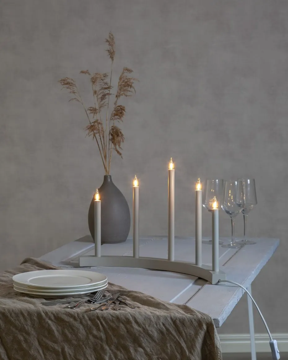 Der Accent Adventskerzenständer von Star Trading ist ein stilvoller, bogenförmiger, elektrischer Kerzenständer aus Holz mit fünf Metallkerzenhaltern. Stellen Sie den Adventskerzenständer auf die Fensterbank oder den Beistelltisch. Das schlichte Design passt wunderbar zu allen Stilrichtungen und Weihnachtsdekorationen. Der Accent Holzkerzenständer verbreitet ein stimmungsvolles Licht und bringt einen zauberhaften Hauch von Weihnachtsmagie in Ihr Zuhause. (automatische Übersetzung von www.nordicnest.se)