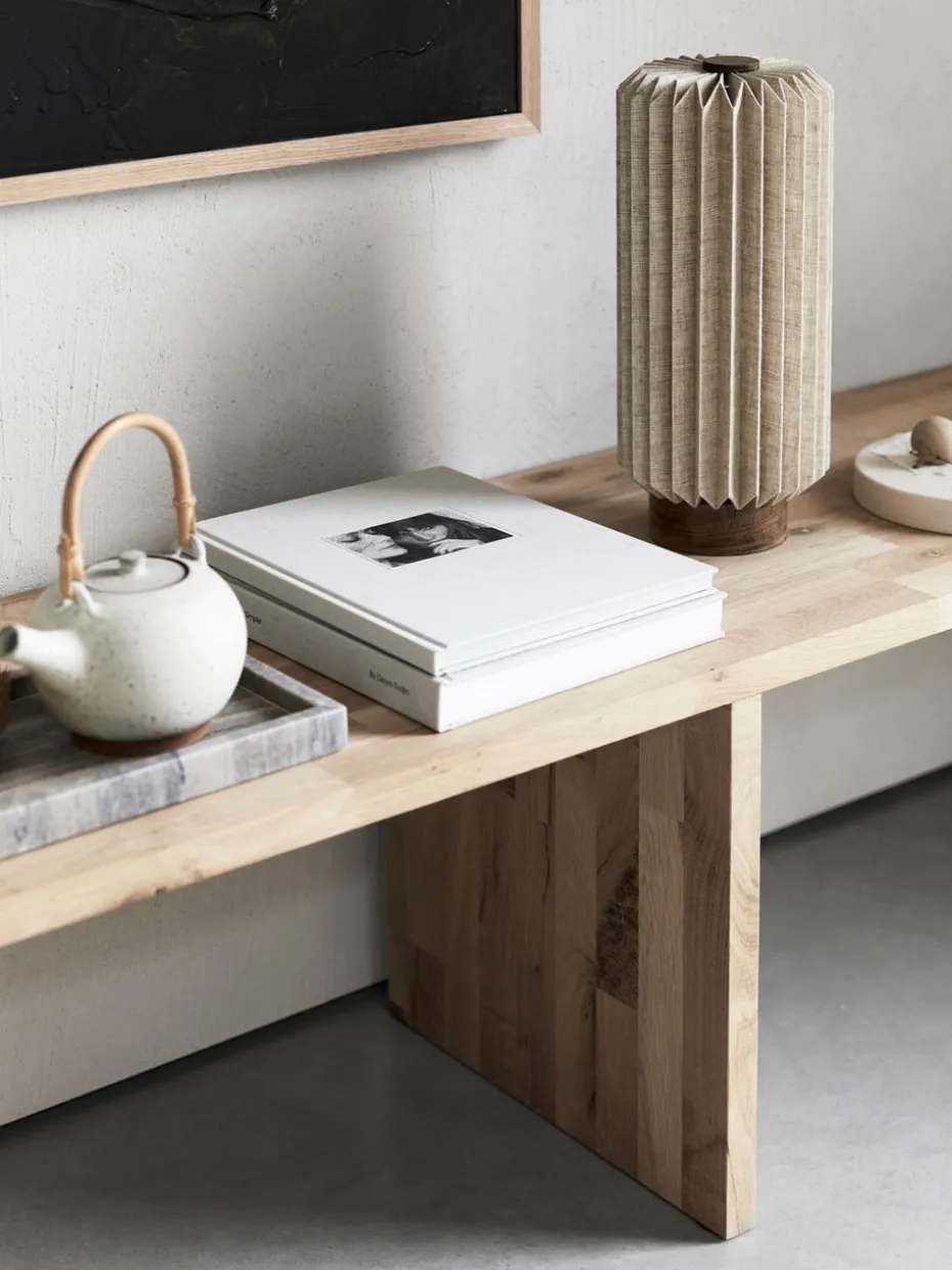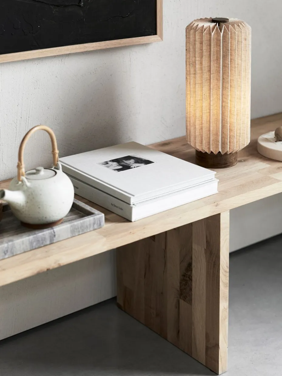 Die Alba Tischlampe von Watt & Veke kombiniert wunderschön plissiertes Leinen mit einem Sockel aus dunkel gebeiztem Mangoholz. Der sanfte Kontrast zwischen den Materialien erzeugt ein gedämpftes Licht, ideal, um auf der Fensterbank oder einem Beistelltisch platziert zu werden. Mit einem luxuriösen Textilkabel wird die Lampe zu einer stilvollen Ergänzung für das Zuhause.