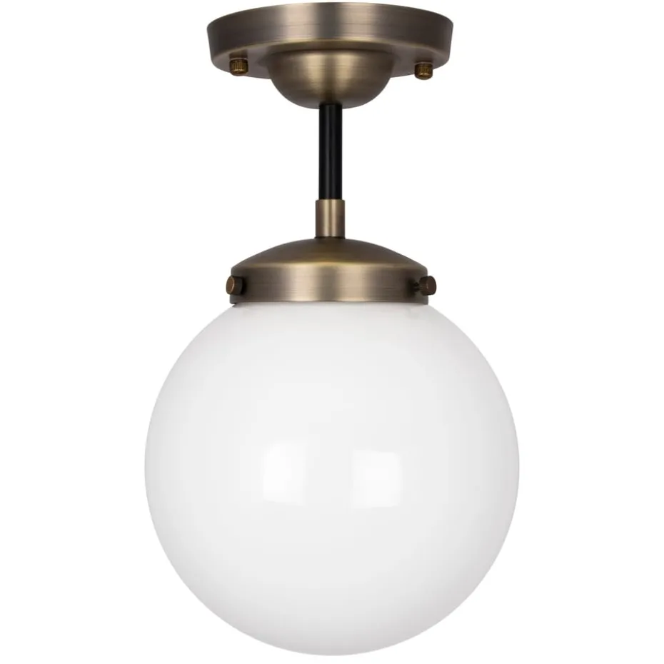 Die Alley Deckenleuchte IP44 der schwedischen Marke Globen Lighting hat ein elegantes, jahrhundertwendungsinspiriertes Design mit feinen Details in der Deckenplatte und der Halterung der Kuppel. Die große Glaskugel hängt ein Stück von der Leuchte herab und verleiht dem Raum einen stilvollen Look. Diese schöne Deckenleuchte ist zudem wasserfest und kann auch hervorragend im Badezimmer oder in der Küche montiert werden.