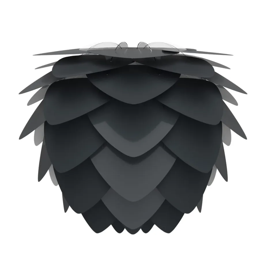 Die Aluvia Leuchte anthracite der Marke Umage / Vita verfügt über ein klassisches, gefächertes Design, das aus kleinen Aluminium-Blättern besteht. Durch die aus Metall gefertigten Blätter wird die Lampe von einer robusten und gleichzeitig leichten, luftigen Note umgeben. Eine hübsche, vielschichtige Lampe, die sich ausgezeichnet über dem Küchentisch oder im Wohnzimmer macht. Wie auch die meisten anderen Lampen von Vita wird die Aluvia Leuchte ohne Kabel geliefert. So können Sie selbst entscheiden, ob Sie diese als Decken-, Tisch- oder Bodenlampe verwenden möchten.