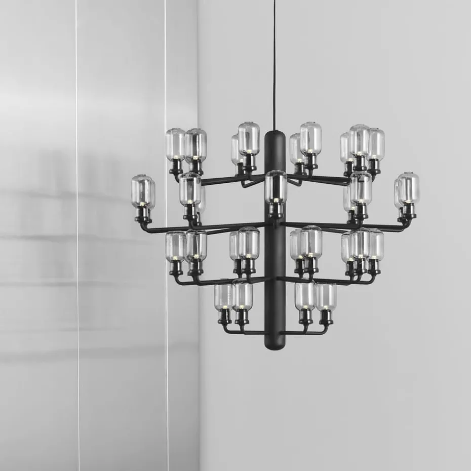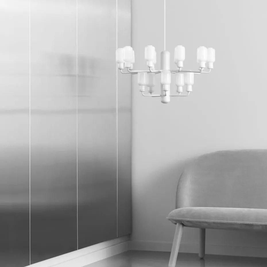 Der Amp Kronleuchter von Normann Copenhagen, entworfen von Simon Legald, ist inspiriert von Röhrenverstärkern aus den 60er Jahren. Mit einem nostalgischen Twist kombiniert er Marmor und Glas, um die Details hervorzuheben, wobei der Schirm harmonisch auf dem Sockel ruht. Der transparente Glasdom offenbart und umrahmt die dekorative Glühbirne auf elegante Weise, wodurch in jedem Raum eine einzigartige und unvergessliche Beleuchtung entsteht. Die Amp-Serie fängt sowohl Geschichte als auch Gegenwart in einer perfekten Verbindung ein.