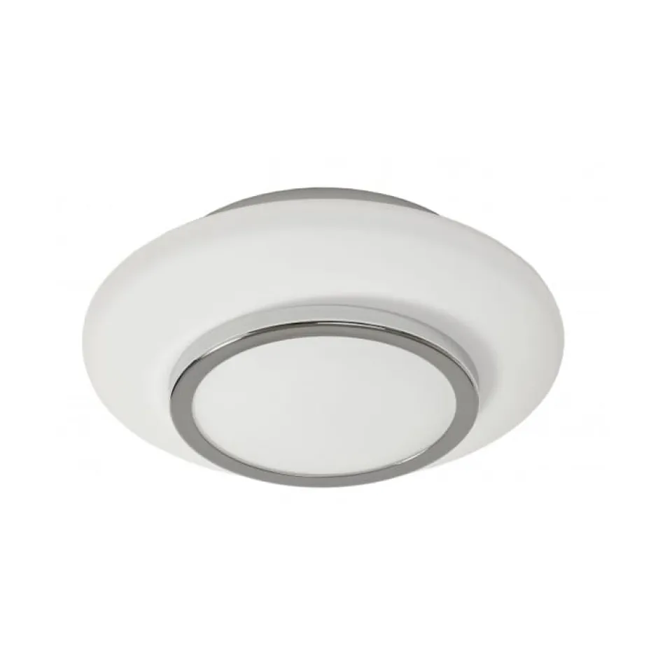 Schöne Deckenlampe, geeignet für Badezimmerumgebungen mit IP-Klasse 44. Schöner, weißer Rahmen mit Chromdetails. Verbreitet ein gutes und blendfreies Licht. Lichtquelle nicht enthalten. HINWEIS! Funktioniert nur mit E27-Kugellampe