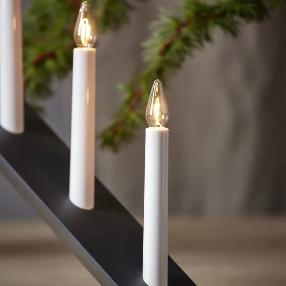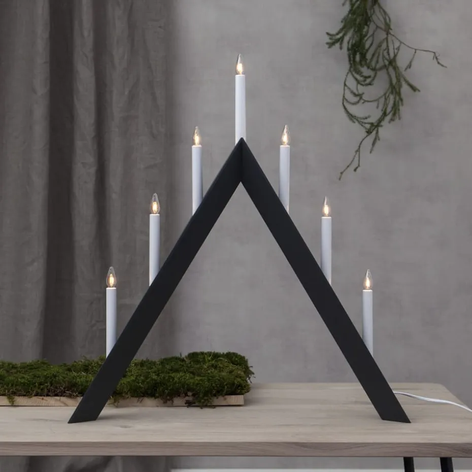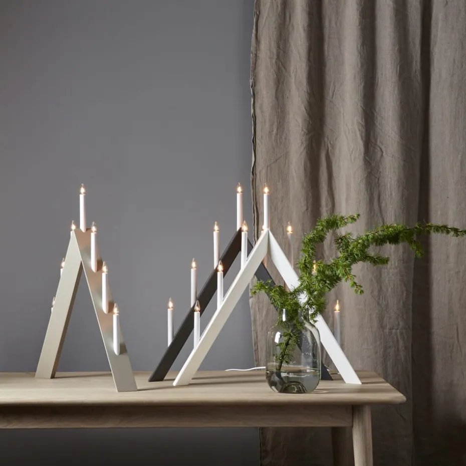 Der Arrow Kerzenhalter 64,5cm von Star Trading ist ein hölzerner Kerzenhalter mit abgeschrägten Formen, der eine wundervolle Weihnachtsatmosphäre im Haus verbreitet. Dieser moderne Adventsleuchter verfügt über sieben Lichtquellen, welche ein warmes Licht mit einem hohen Gemütlichkeitsfaktor ausstrahlen. Die Lichtquellen sind im Lieferumfang enthalten.