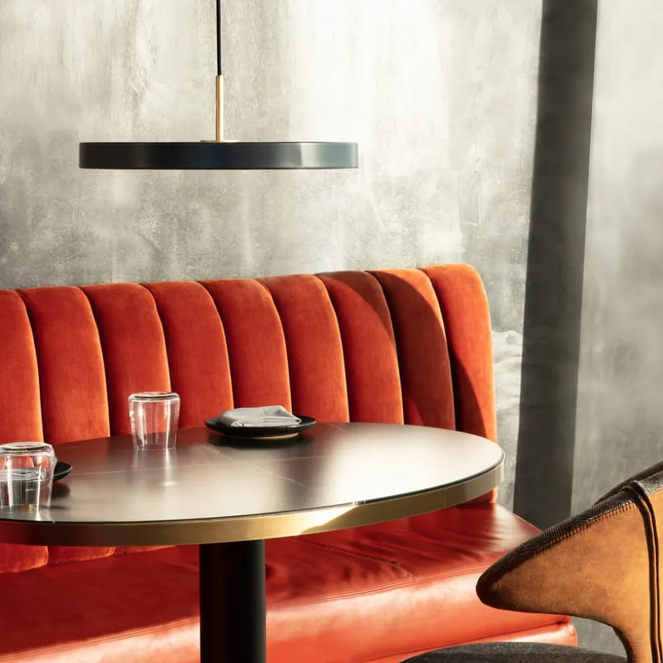 Die Asteria Pendelleuchte von Umage vereint Design, Handwerk und Technik: In der eleganten, minimalistischen Form sind LEDs eingebaut, die behagliches Licht spenden. Die Pendelleuchte ist zudem dimmbar.