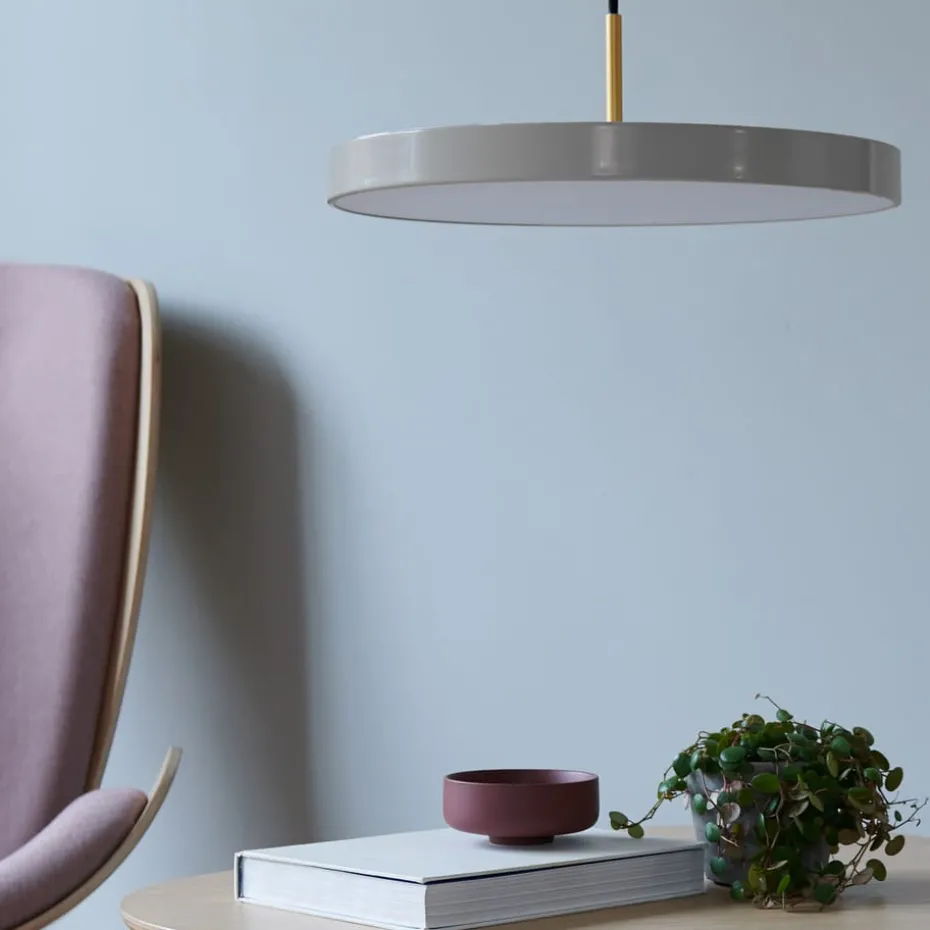Die Asteria Pendelleuchte von Umage vereint Design, Handwerk und Technik: In der eleganten, minimalistischen Form sind LEDs eingebaut, die behagliches Licht spenden. Die Pendelleuchte ist zudem dimmbar.