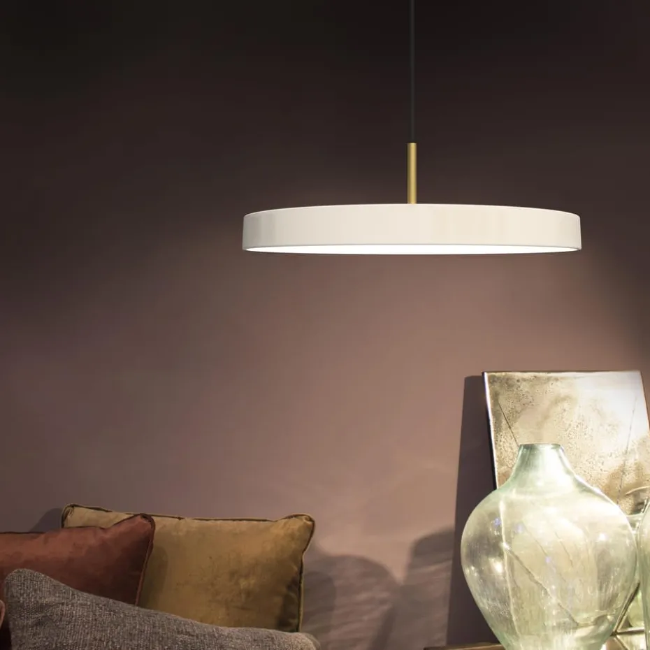 Die Asteria Pendelleuchte von Umage vereint Design, Handwerk und Technik: In der eleganten, minimalistischen Form sind LEDs eingebaut, die behagliches Licht spenden. Die Pendelleuchte ist zudem dimmbar.