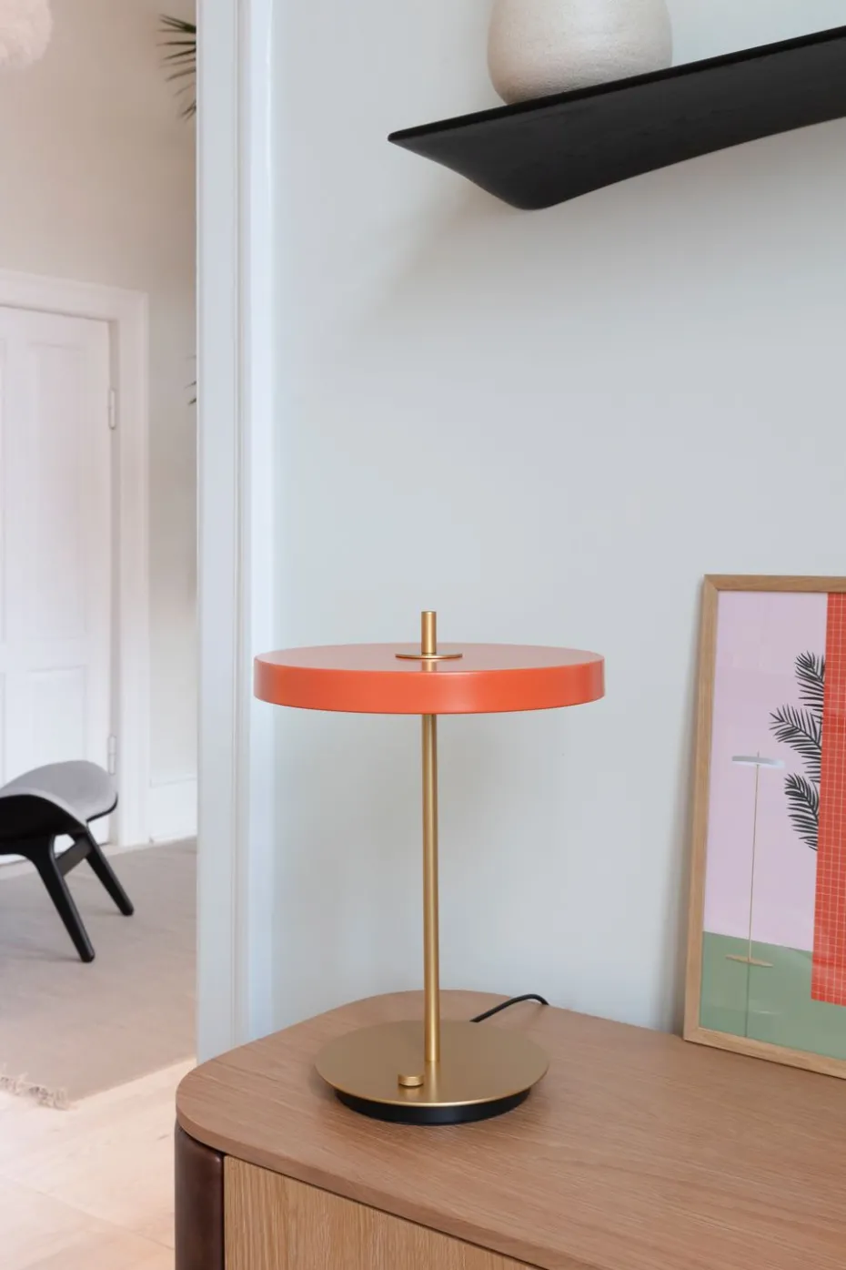 Die Asteria Tischleuchte von Umage ist eine stilvolle und minimalistische Leuchte, welche eine exklusive Atmosphäre im Raum verbreitet. Die Leuchte verfügt über einen eingebauten USB-Anschluss, der es beispielsweise ermöglicht, das Mobiltelefon auf schöne und praktische Weise aufzuladen.
