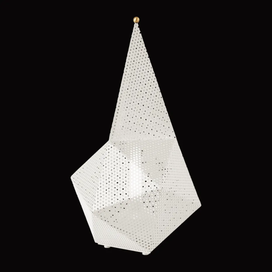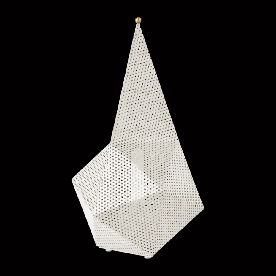 Die Bagdad portabel Leuchte von GUBI ist aus perforiertem Metall gefertigt, einem Material signiert von Mathieu Matégot. Eine tragbare Tischleuchte, die ursprünglich 1954 entworfen wurde, ist jetzt in einer modernen und kleineren Version zurück, die es einfach macht, sie im Haus zu bewegen. Die skulpturale Form und das kubistische Design der Leuchte verleihen ihr einen zeitlosen und verspielten Charakter. Mit drei einstellbaren Helligkeitsstufen und einer wiederaufladbaren Funktion wird sie zu einer praktischen und stilvollen Beleuchtungslösung für den Innen- und Außenbereich.