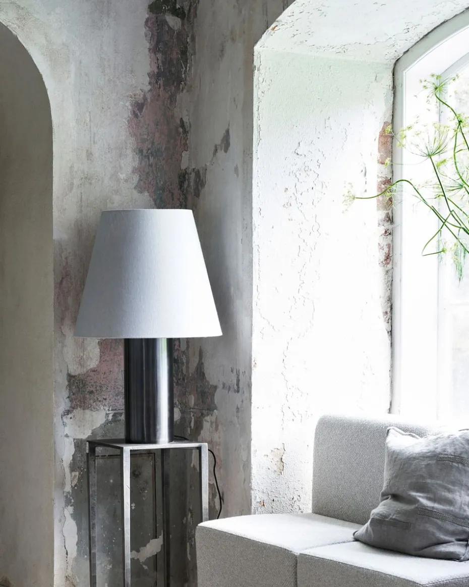 Der Bakra Lampenschirm Antikweiß von der dänischen Marke House Doctor ist ein leicht konisch geformter Lampenschirm aus wunderschönem chambraygewebtem Leinenstoff, das ihm eine melierte Oberfläche verleiht. Kombinieren Sie den Lampenschirm mit einem beliebigen Lampenfuß, um eine vollständige Lampe zu erhalten, die Sie beispielsweise im Schlafzimmer oder im Wohnzimmer platzieren können.