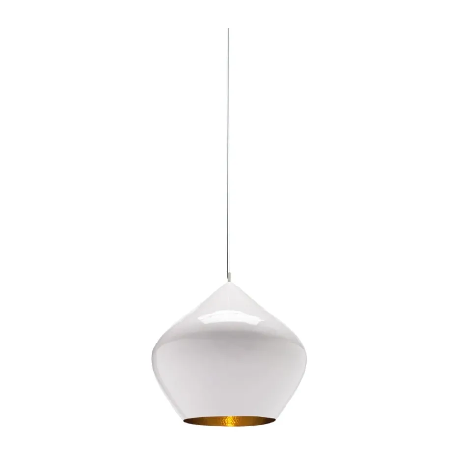 Die Beat Stout Pendelleuchte LED Ø52 cm von Tom Dixon ist eine beeindruckende Deckenleuchte. Inspiriert von traditionellen indischen Wassergefäßen und hergestellt von Handwerkern in Nordindien, dauert ihre Herstellung vier Tage. Das Innere der Leuchte ist mit goldenem Messing verkleidet, um ein sanftes und warmes Licht zu reflektieren. Die Beat Stout ist perfekt für diejenigen, die sowohl Funktionalität als auch Eleganz in der Beleuchtung suchen.