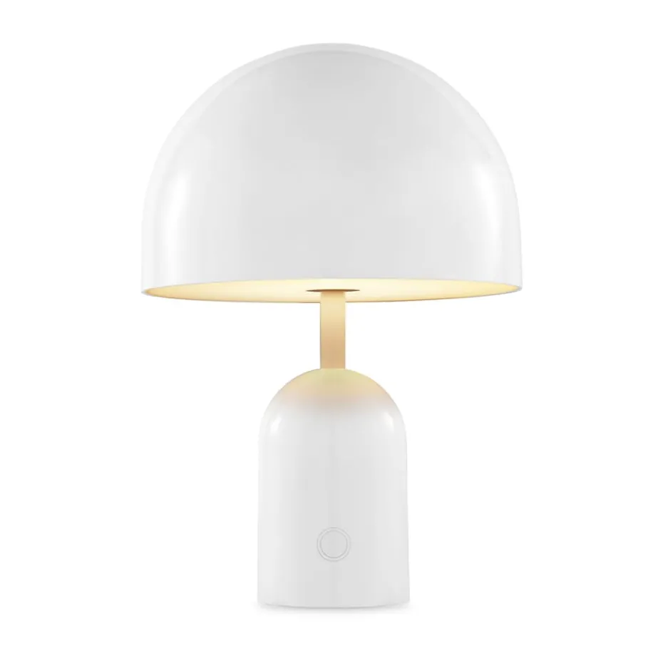 Die Bell Portable LED Tischleuchte 28cm von Tom Dixon ist eine tragbare Lampe mit Touchdimmer und bis zu neun Stunden Akkulaufzeit. Das spiegelnde Finish der Tischleuchte lässt sie das Aussehen der Umgebung aufnehmen, während die versteckte Lichtquelle ein weiches, nach unten gerichtetes Licht erzeugt. Nehmen Sie die Bell-Lampe mit auf den Balkon, wenn der Abend hereinbricht, oder stellen Sie sie dort auf, wo Sie zusätzliches Licht benötigen, aber keine Steckdose vorhanden ist.
