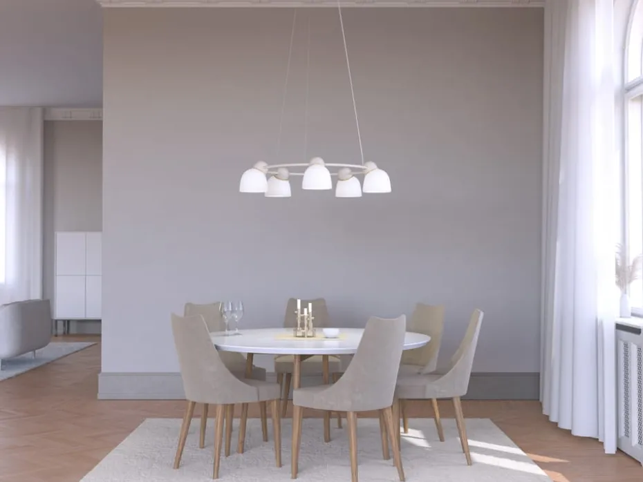 Bird Kronleuchter Ø95,3 cm von Belid ist aus Metall gefertigt und verbindet klassisches Handwerk mit innovativem Design von Färg & Blanche. Die großzügige, kreisförmige Form schafft eine schwebende und elegante Silhouette, die es zum natürlichen Mittelpunkt des Raumes macht. Wählen Sie zwischen Schirmen aus Opalglas für ein sanftes Licht oder Metall für eine gezieltere Lichtverteilung. Perfekt über einem Esstisch oder in einem offenen Raum, wo er Funktion mit einem ausdrucksstarken Charakter kombiniert.