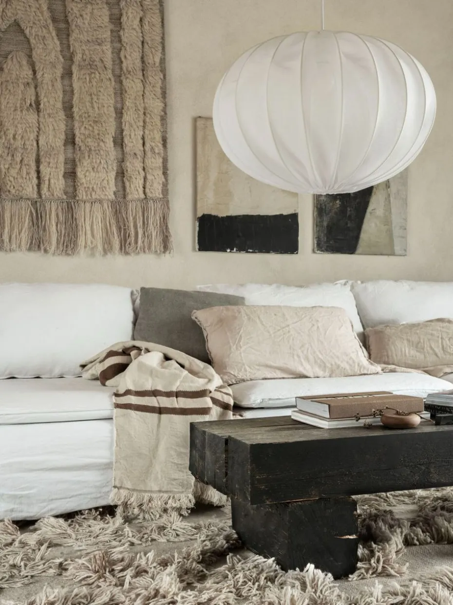 Boll 65 linen Lampenschirm von Watt&Veke ist eine elegante, kürbisförmige Deckenleuchte mit einem Gestell aus schwedischem Stahl und bezogen mit einem Leinenmischgewebe. Ihre weiche Form und der feine Lichtdurchlass machen sie perfekt, um im Schlafzimmer, Wohnzimmer oder Flur eine warme und einladende Atmosphäre zu schaffen. Kombinieren Sie sie mit einer Deckenaufhängung in verschiedenen Farben, um Ihrem Stil zu entsprechen. Ein stilvolles und funktionales Detail, das den Raum aufwertet.