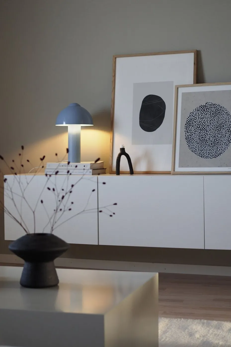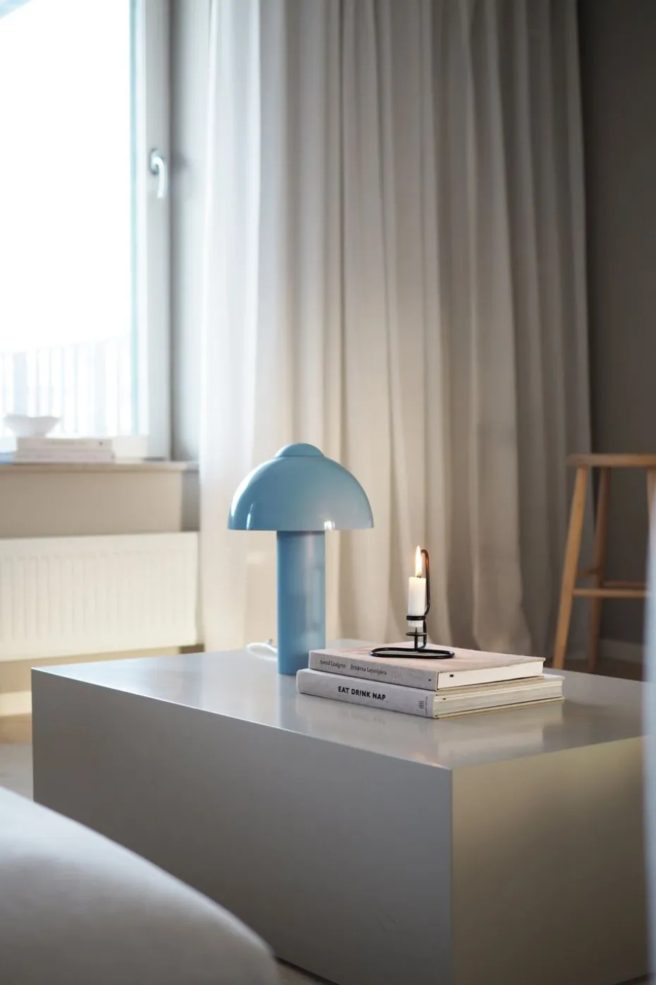 Die Buddy 23 Tischleuchte 36 cm von Globen Lighting, entworfen von Mikael Holvik, ist der perfekte Begleiter im Zuhause. Wenn der Abend einbricht, spendet sie ein angenehmes, nach unten gerichtetes Licht. Die Lampe hat einen matten Fuß und oberen Teil, die im Kontrast zu einem hochglänzenden Lampenschirm stehen. Dieses Spiel mit dem Glanz macht sie zu einem leicht zu platzierenden Farbtupfer im Zuhause.