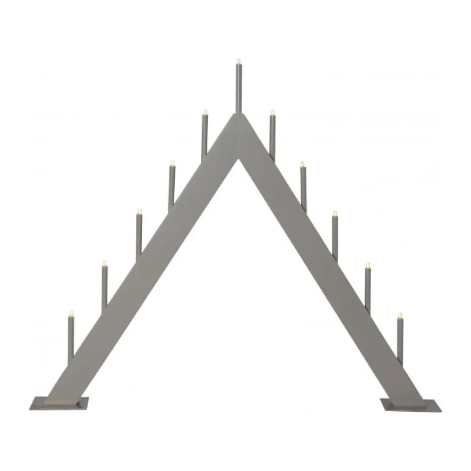Stilvoller Kerzenhalter mit starkem Holzsockel, Kerzenhalter aus dünnen Metallrohren. Kommt mit 11 Lichtquellen – E5-Lampen und Textilkabel in Weiß / Grau. Gibt das ganze Jahr über ein wunderbares stimmungsvolles Licht.
