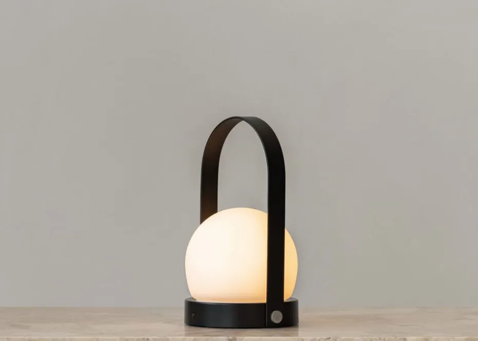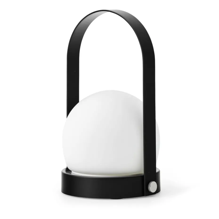 Die tragbare Carrie Leuchte der dänischen Marke Audo Copenhagen wurde von Norm Architects entworfen und hat einen Sockel aus pulverbeschichtetem Stahl und ein Opalglas, das ein angenehmes Licht spendet. Carrie hat eine LED-Lichtquelle und wird durch einen internen Akku betrieben, der mit dem mitgelieferten USB-Kabel aufgeladen werden kann. Dadurch ist die Lampe tragbar und kann unendlich oft verwendet werden. Der Griff kann auch abgenommen werden, um das Aussehen der Lampe zu verändern und sie etwas einfacher zu platzieren. Diese leichte, flexible und tragbare Tischleuchte sorgt für helle Stunden – sowohl draußen als auch drinnen. Verwenden Sie die tragbare Lampe an langen Sommerabenden auf der Terrasse oder nehmen Sie sie mit, wenn Sie eine Nacht unter dem Sternenhimmel verbringen.