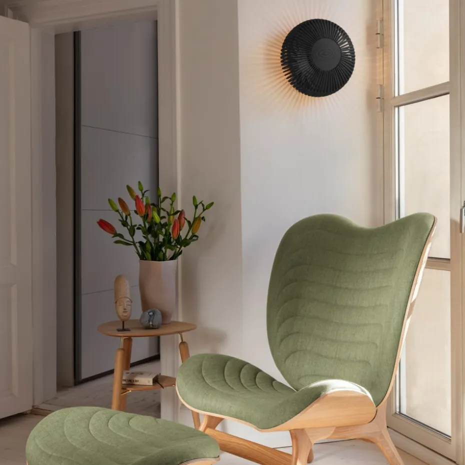 Die Clava Up Wandleuchte medium der dänischen Marke Umage hat ein wunderschönes Design, das einem Rad ähnelt, bei dem die lasergeschnittenen Lamellen aus Holz im erleuchteten Zustand eindrucksvolle Schatten erzeugen. Die Wandleuchte kann auch wunderbar als Deckenleuchte verwendet werden.