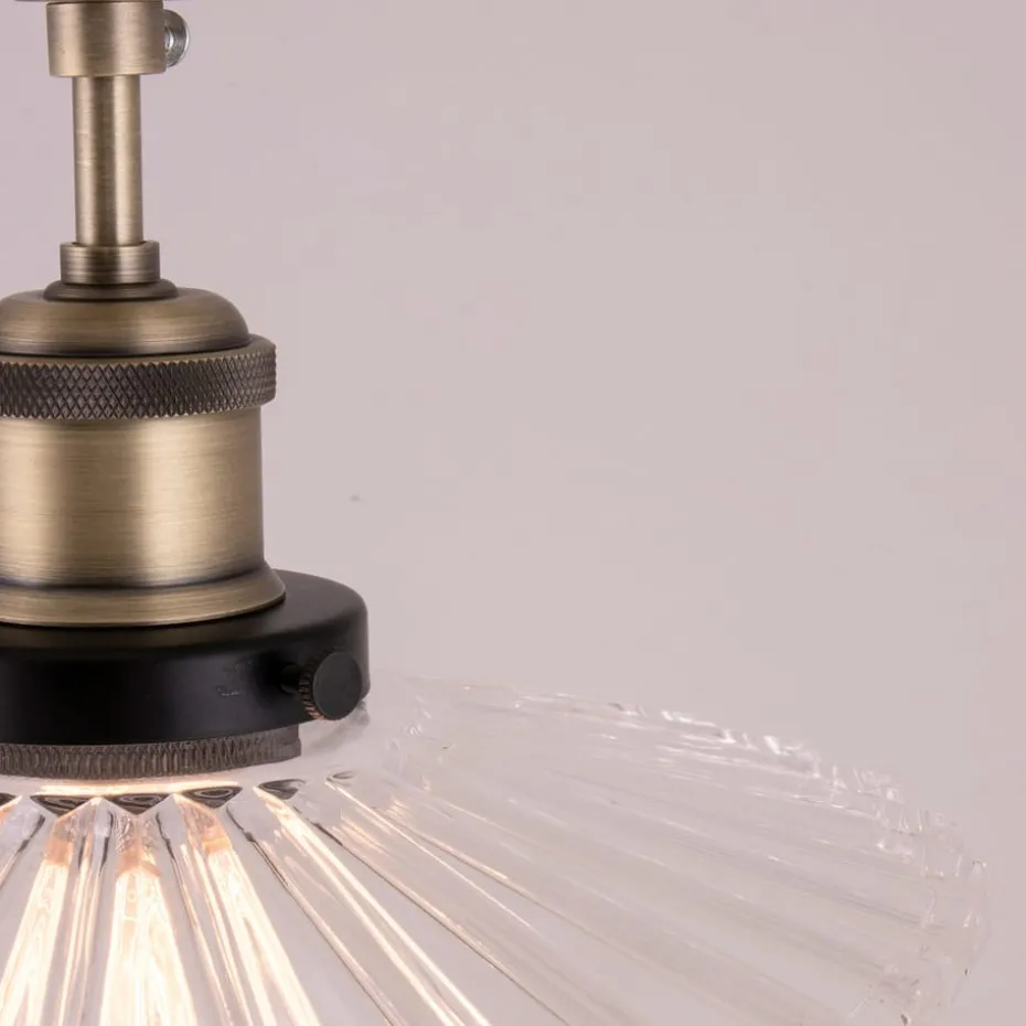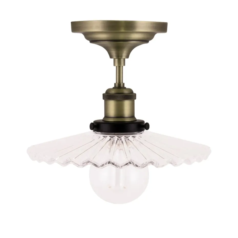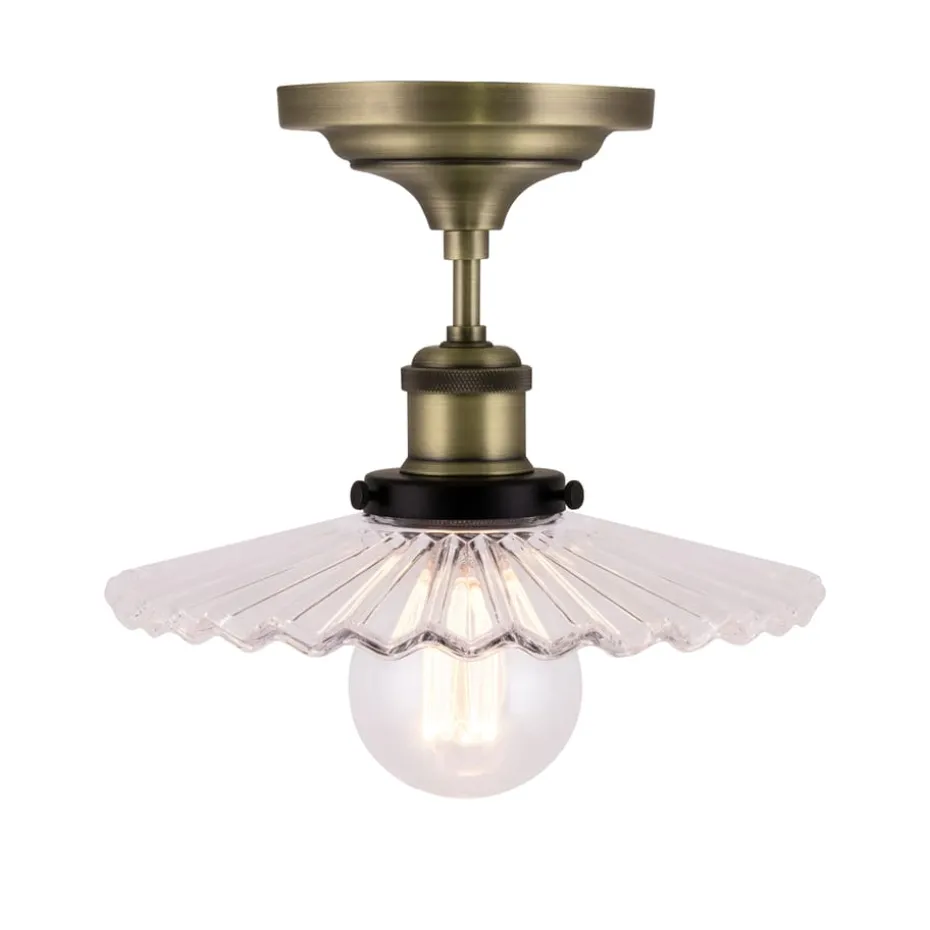 Die Cobbler Deckenleuchte 25cm von Globen Lighting ist eine von der Jahrhundertwende inspirierte Leuchte im klassischen Schuhmacher-Stil mit einem plissierten Glasschirm.