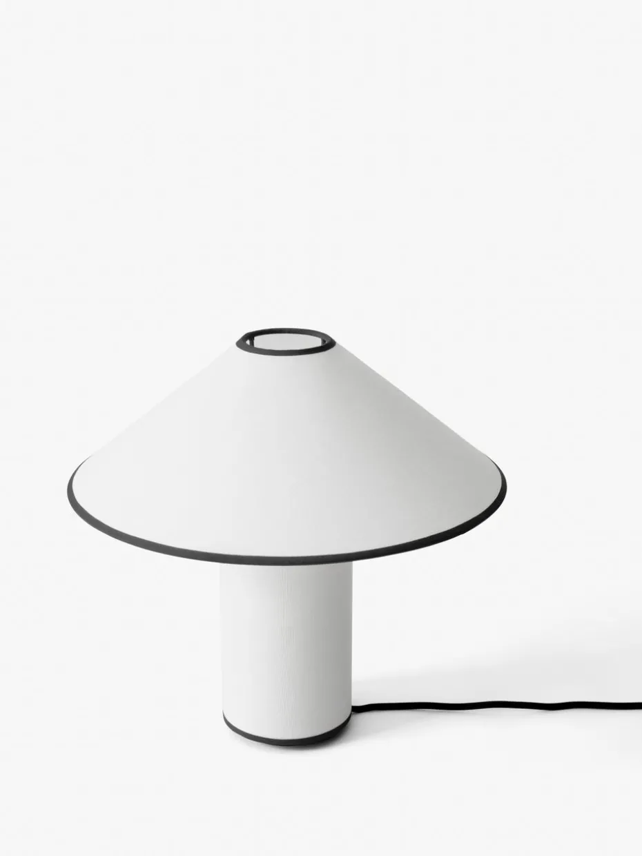 Colette ATD6 Tischleuchte von &Tradition hat ihren Namen von der berühmten Schriftstellerin Colette. Die weiße dimmbare Lampe besteht aus einer Mischung aus Baumwolle und Leinen und hat eine Ästhetik, die elegant und zugleich verspielt ist. Verwenden Sie die Tischleuchte auf dem Schreibtisch im Homeoffice oder als Fensterleuchte im Wohnzimmer.
