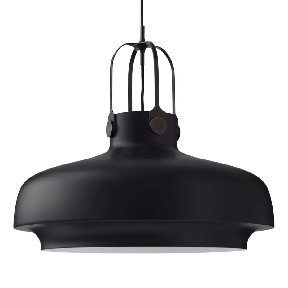 Die große Copenhagen Pendelleuchte SC8 von der dänischen Marke &Tradition wurde von Space Copenhagen entworfen. Die Lampe hat ein modernes Design mit einem industriellen Look in mattem Schwarz, der an die klassischen Straßenlaternen erinnert, die an den Docks in Kopenhagen zu finden sind. Die Lampe eignet sich hervorragend über einem größeren Esstisch und verbreitet ein warmes und angenehmes Licht, wenn sie eingeschaltet ist!