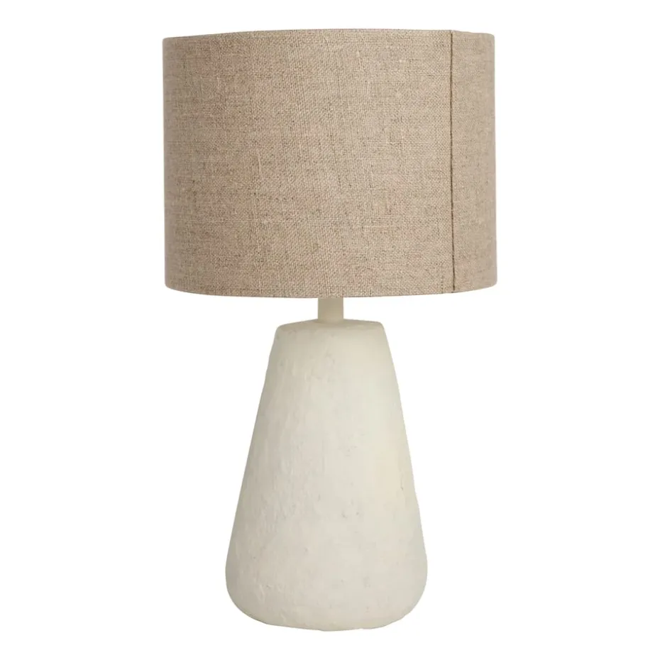 Die Cora Tischleuchte 35cm von Watt & Veke ist aus recyceltem Pappmaché gefertigt und hat eine einzigartige organische Form. Der Sockel besteht aus schwarzem Metall und bildet einen schönen Kontrast. Passt perfekt als Tischleuchte im Haus oder im Büro.