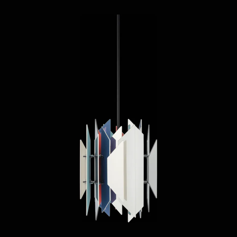 Die Divan 2 160 Pendelleuchte ist eine faszinierende Deckenlampe, die aus Spiegeln und mehrfarbigen Trapezoiden gefertigt ist. Entworfen von Simon P. Henningsen im Jahr 1962, erzeugt diese Lampe ein interessantes Spiel von indirektem Licht. Das nach unten gerichtete Licht ist weich und angenehm. Jede Lampe wird immer noch von Hand zur Perfektion montiert.