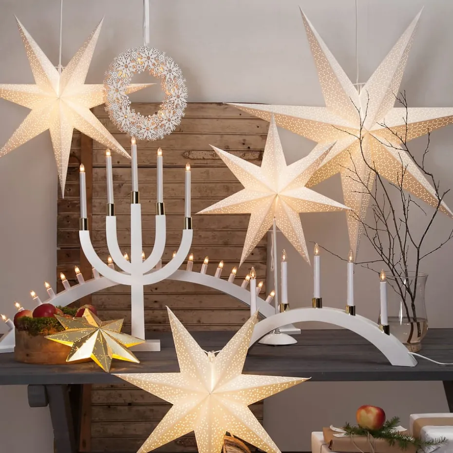 Der Dot Adventsstern 100 cm von Star Trading ist ein wunderschöner hängender Weihnachtsschmuck. Platzieren Sie ihn im Fenster, damit Passanten die Magie des Advents genießen können – zudem wird es jedes Mal, wenn Sie nach Hause kommen, ein freudiger und festlicher Gruß sein. Der stilvolle Papierstern hat ein dekoratives Muster aus winzigen Perforationen, das ein schönes Spiel von Schatten auf den umliegenden Wänden erzeugt – eine reizvolle Kulisse für das warme und stimmungsvolle Leuchten des weichen Mittellichts. Nutzen Sie den Adventsstern, um eine ansonsten leere Wand des Wohnzimmers zu verschönern und gleichzeitig die gemütliche Feiertagsstimmung zu heben! (automatische Übersetzung von www.nordicnest.se)