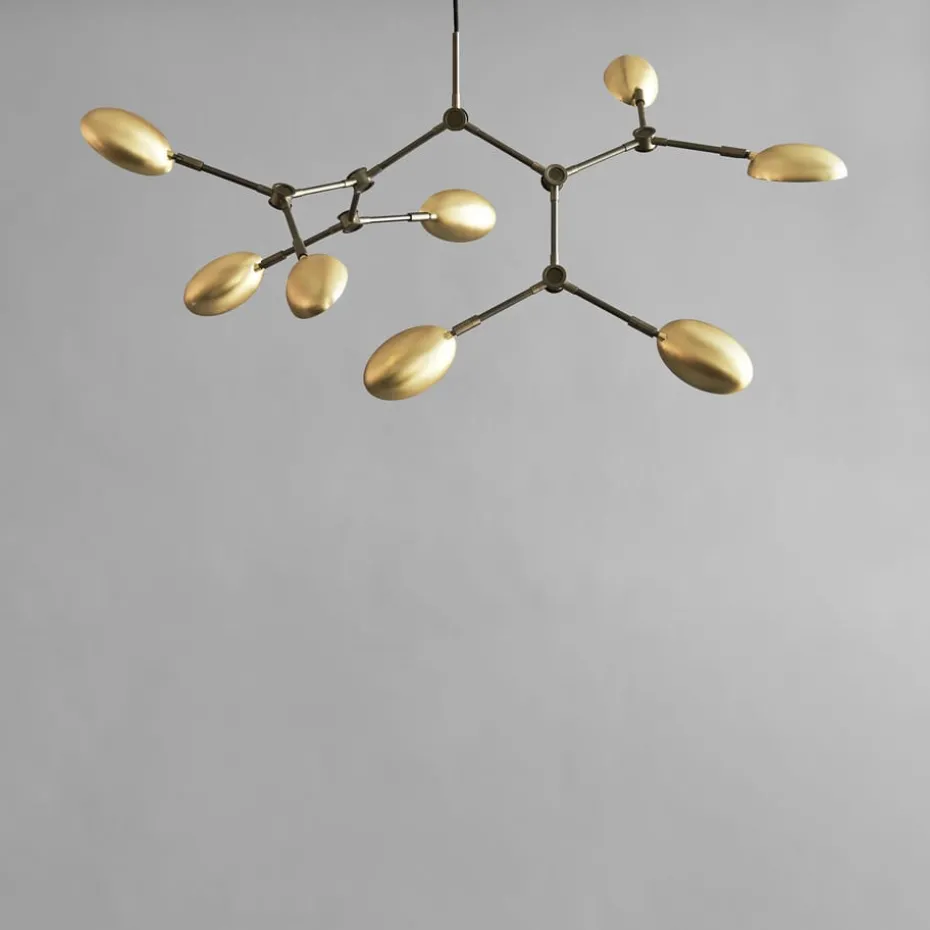 Die Drop Chandelier Deckenleuchte Mini von der dänischen Marke 101 Copenhagen ist ein Design, das die 1950er-Jahre mit sanft geschwungenen Lampenschirmen an 14 flexiblen und verstellbaren Armen feiert. Die schön geformte Deckenleuchte verbreitet ein warmes und angenehmes Licht und trägt zur Eleganz Ihres Zuhauses bei.