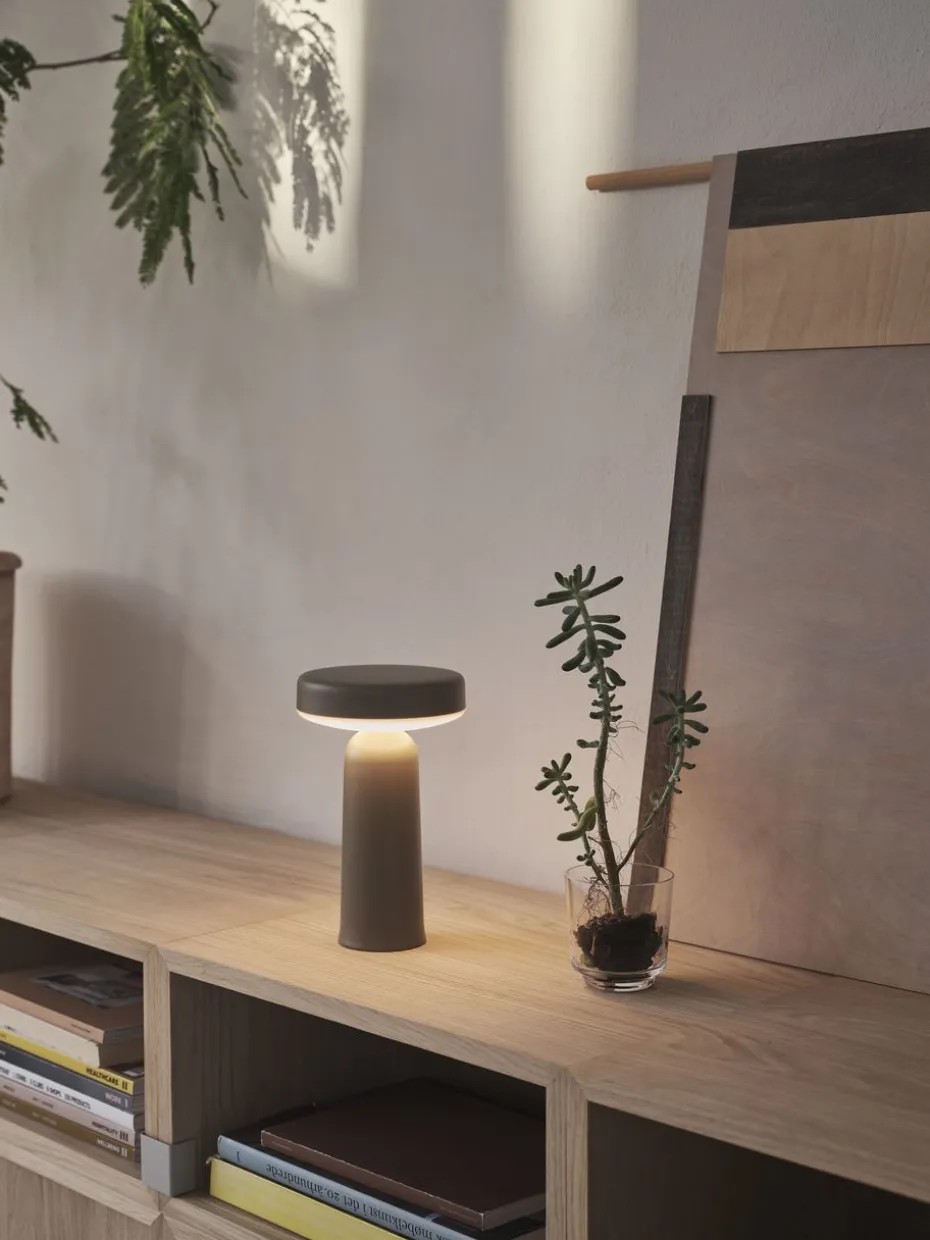 Die Ease portable Tischleuchte 21,5cm von der dänischen Marke Muuto ist aus ABS-Kunststoff gefertigt und verbindet die Form traditioneller Tischleuchten mit moderner Technologie in einer Größe, die die tragbare Lampe leicht mitzunehmen macht. Design von Johan Van Hengel 2023. Die Tischleuchte ist dimmbar und kann zwischen stimmungsvollem Licht und funktionaler Beleuchtung wechseln. Die Ease-Lampe passt mit ihrem zeitlosen Design in die meisten Umgebungen, sei es als Bettbeleuchtung, in der Leseecke oder auf der Terrasse.