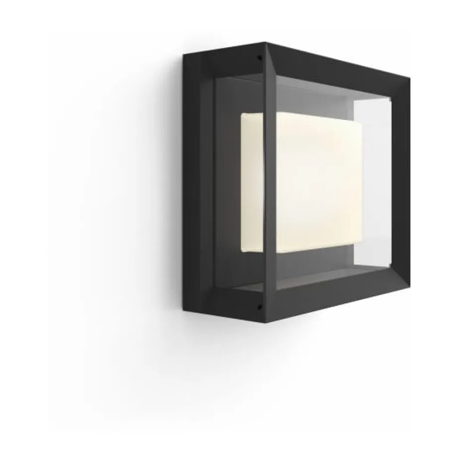 Philips Hue ist eine intelligente Serie, die endlose Beleuchtungsmöglichkeiten innerhalb und außerhalb des modernen Zuhauses bietet. Die Fuzo Wandleuchte kann mit der vorhandenen Hue Bridge verbunden werden, sodass Sie Zugriff auf alle Funktionen wie Fernbedienung und Zeitplanung haben. Mit ihrem hohen Lichtstrom heißt sie Sie Zuhause willkommen. (Hue Bridge nicht im Lieferumfang enthalten.) Die Lampe besteht aus hochwertigem Aluminium und gehärtetem Glas für beste Leistung im Freien. Es ist IP44-zertifiziert und sowohl gegen Feuchtigkeit, Regenspritzer als auch gegen raues Wetter geschützt. Hue-Bridge erforderlich. Die Lichtquelle entspricht einem Licht von 79W. Integrierte LED-Beleuchtung. Produkt Vorteile: Weiß- und Farbambiente – Vollständige Lichtsteuerung. Hue-Bridge erforderlich Weißes und farbiges Licht Betrieb mit Netzstrom Smarte Steuerung mit Hue Bridge (nicht im Lieferumfang enthalten).