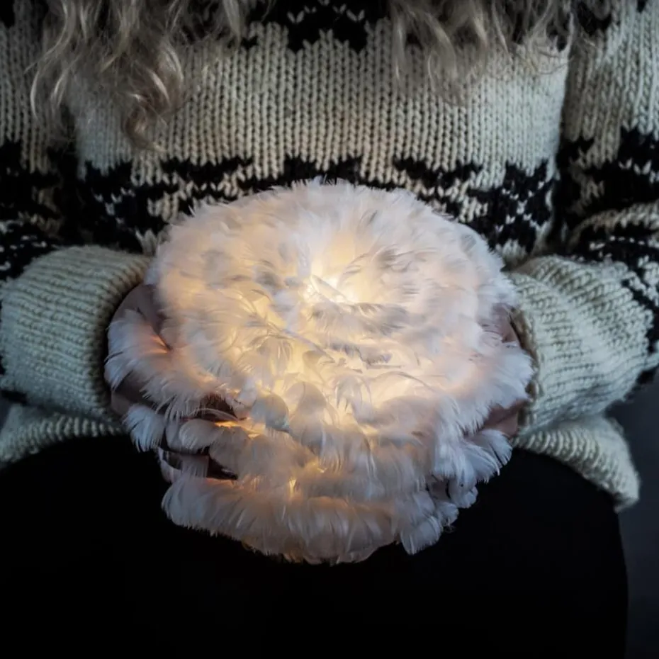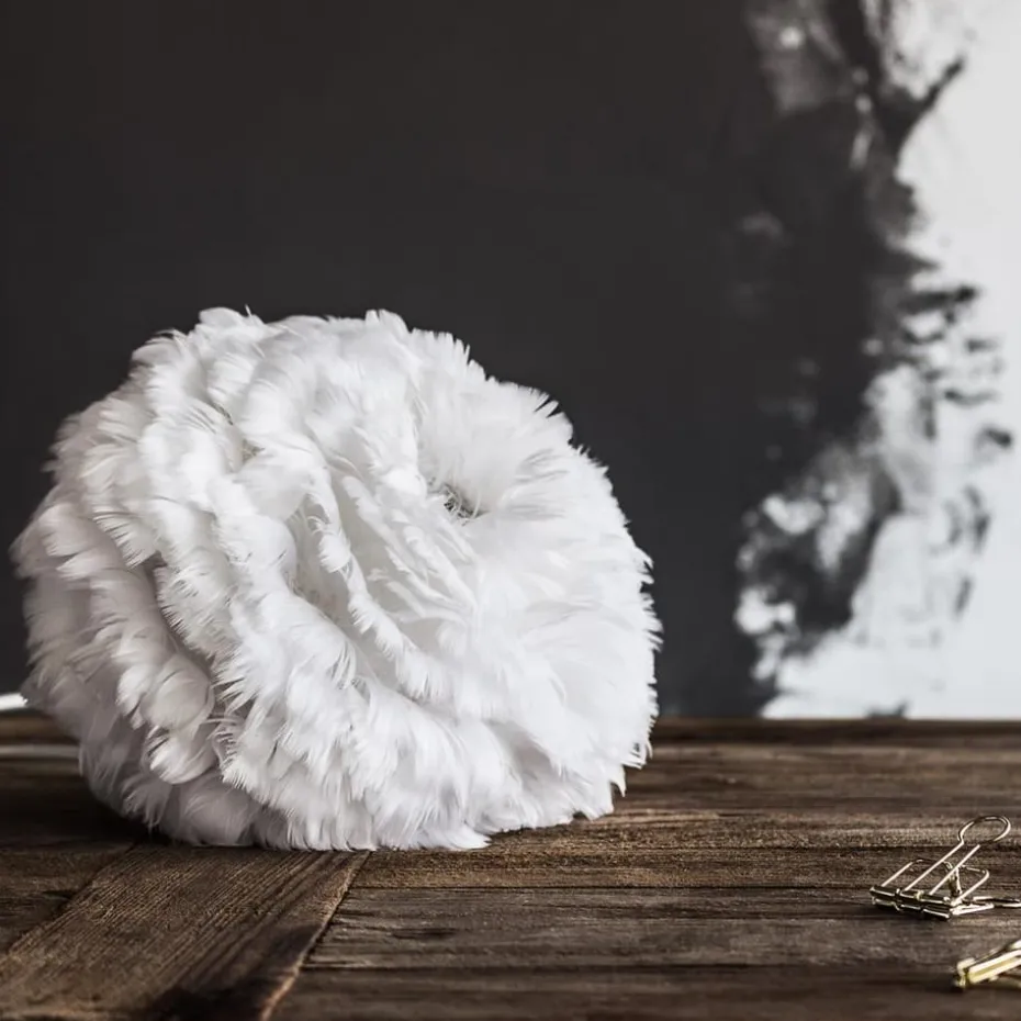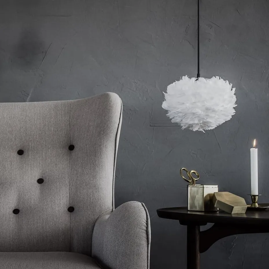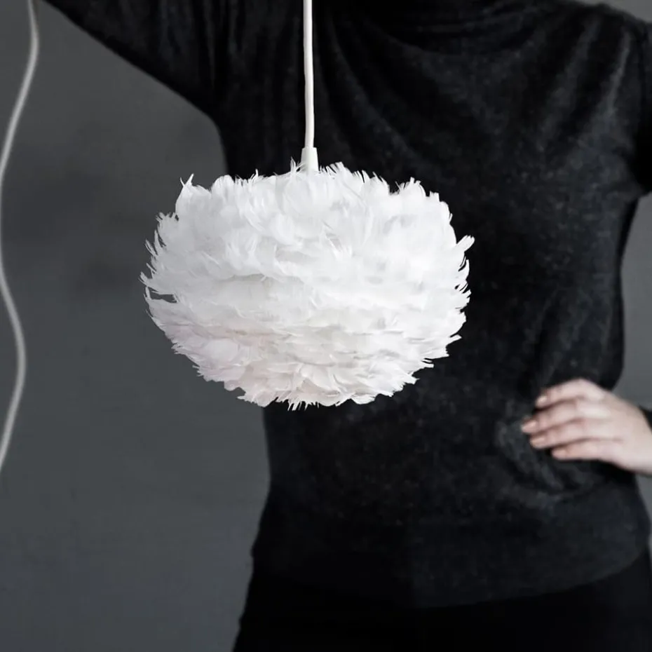 Eos is eine Gänsefederleuchte des dänischen Leuchtendesigners Umage / Vita. Diese Leuchte wird aus echten Vogelfedern gefertigt, die jeweils sorgfältig auf einer Papierhülle von Hand positioniert sind. Die Eos von Umage / Vita strahlt ein blendfreies, sanftes Licht aus, und weil das Leuchtmittel durchgehend abgeschirmt ist, ist sie perfekt für jede Höhe.