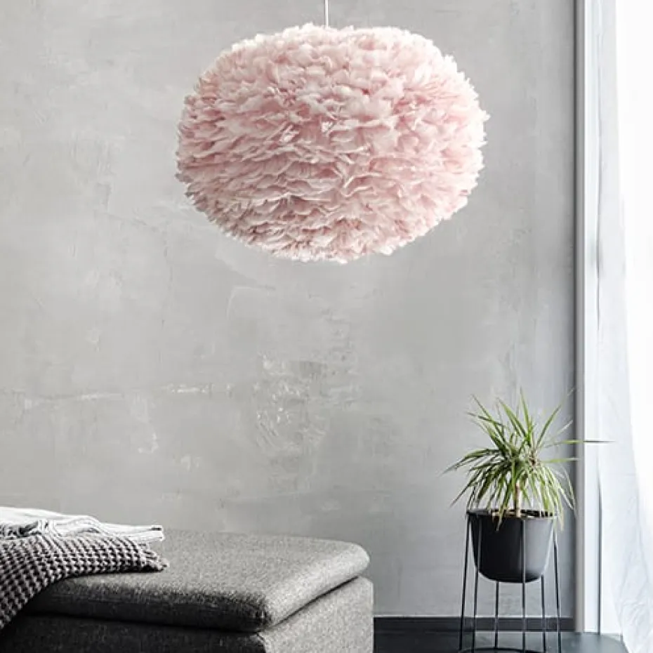 Die Eos Leuchte in hellrosa der Marke Umage (früher bekannt als Vita Copenhagen) kann sowohl als Stehleuchte als auch als Deckenleuchte verwendet werden.Durch ihr Pastell Rosanes Federdesign strahlt diese bei eingeschaltetem Licht einen geradezu atmosphärischen Glanz aus, während sie einem in ausgeschalteten Zustand ein Gefühl von Gemütlichkeit verleiht.Diese Doppel-ästhetik macht die Leuchte zur perfekten Wahl für Schlaf- und Kinderzimmer.