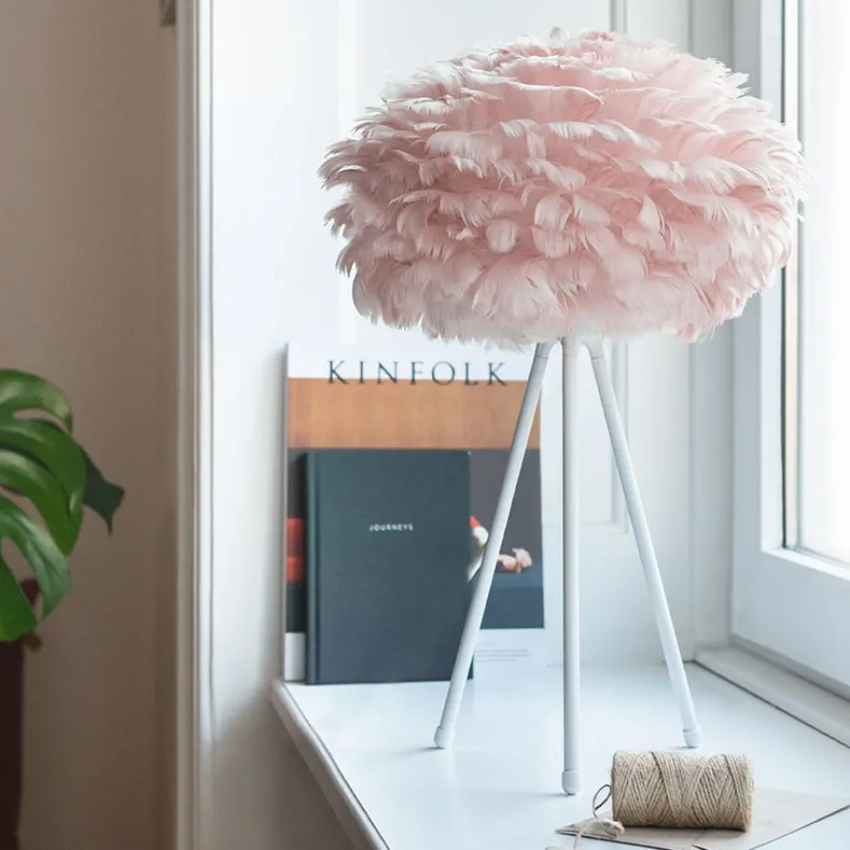 Die Eos Leuchte in hellrosa der Marke Umage (früher bekannt als Vita Copenhagen) kann sowohl als Stehleuchte als auch als Deckenleuchte verwendet werden.Durch ihr Pastell Rosanes Federdesign strahlt diese bei eingeschaltetem Licht einen geradezu atmosphärischen Glanz aus, während sie einem in ausgeschalteten Zustand ein Gefühl von Gemütlichkeit verleiht.Diese Doppel-ästhetik macht die Leuchte zur perfekten Wahl für Schlaf- und Kinderzimmer.