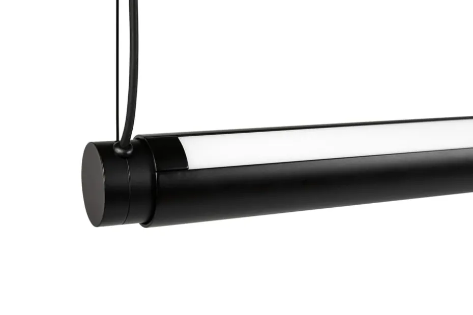 Die Factor Linear Suspension Pendelleuchte 1500 Diffused von der dänischen Marke HAY ist eine röhrenförmige Lampe, die sich um 360 Grad verstellen lässt, wodurch Sie auswählen können, ob Sie direktes oder indirektes Licht verwenden möchten. Dimitri Bähler hat die dimmbare Lampe entworfen, die dank ihres warmen diffusen Lichts perfekt über dem Esstisch oder der Kücheninsel passt.