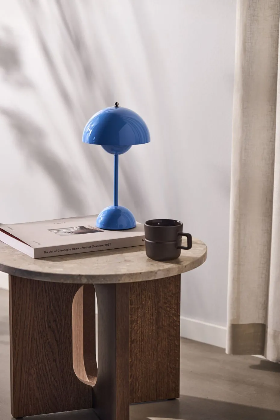 Die tragbare Flowerpot Tischleuchte VP9 von &Tradition ist eine innovative Variante der beliebten Tischleuchte VP3 welche von Verner Panton entworfen wurde Diese tragbare Tischleuchte ist etwas kleiner als die klassische Variante und eignet sich perfekt für den Wechsel zwischen Innen und Außen. Die Leuchte kann mit dem kleinen Stahlknopf oben auf dem Leuchtenschirm in drei Schritten gedimmt werden.