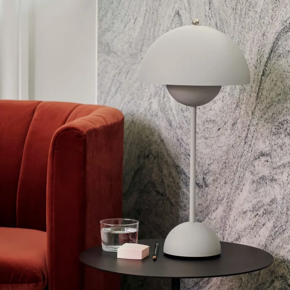 Die Flowerpot Lampe von Verner Panton ist ein wahrer Klassiker des dänischen Designs. Das Modell VP3 Tischleuchte ist in verschiedenen, kräftigen Farben bestellbar und besticht durch den Lampenschirm, der von zwei Halbkugeln geprägt wird. Verner Panton hat die Flowerpot Leuchte zur Zeit der glücklichen Flower Power Ära im Jahre 1969 designt. &Tradition (früher: Unique Copenhagen) hat die Flower Pot Lampe reanimiert, und präsentiert diese Design-Ikone aus Dänemark in zahlreichen Varianten, die nichts von der ursprünglichen Symbolkraft Symbolkraft verloren haben.