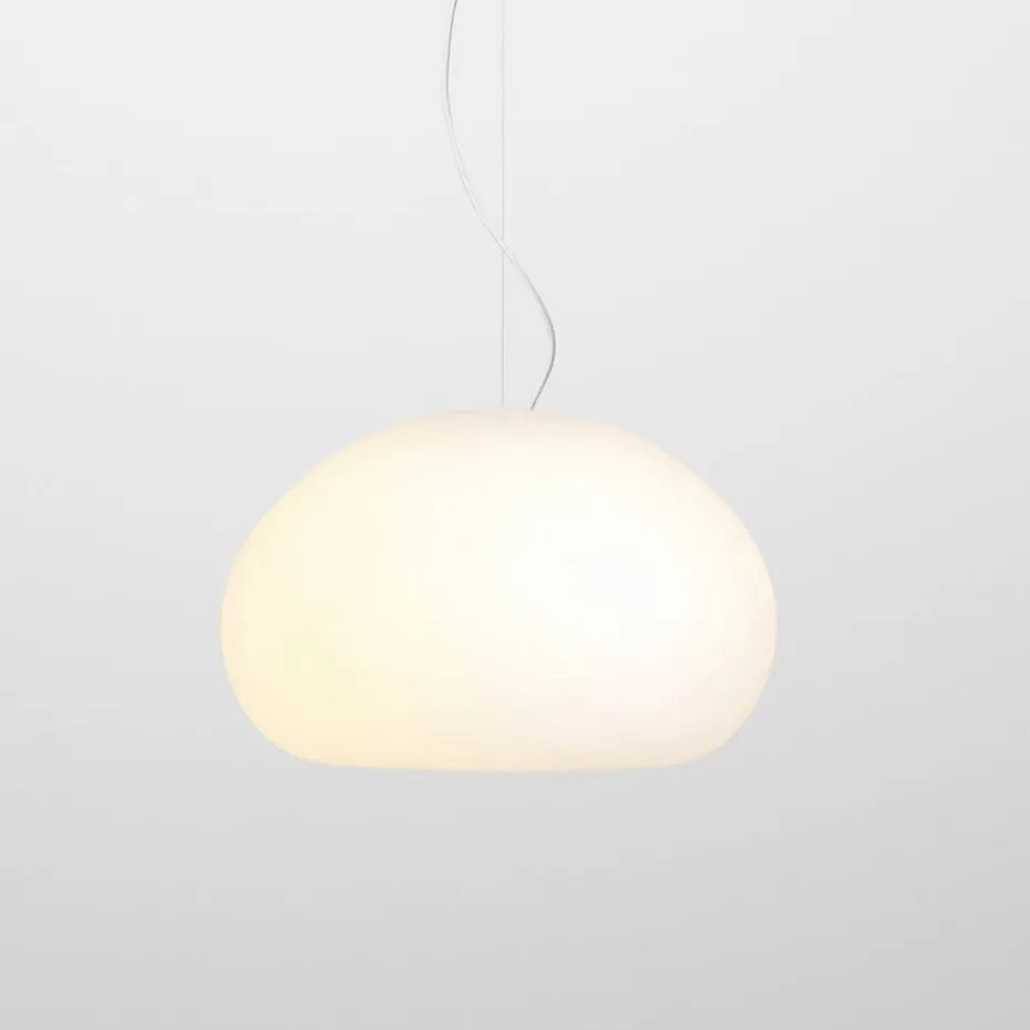 Das gelungene Design der Fluid Pendelleuche von Muuto distanziert sich bewusst von strikten geometrischen Formen und besitzt eine natürlich Formensprache mit weichen, rundlichen Linien. Diese an einen Wassertropfen kurz vor dem Aufprall erinnernde Form ist komplett geschlossen, und verbreitet bei Gebrauch ein sanftes Licht, das in alle Richtungen strahlt. Die Form der Fluid Leuchte variiert aufgrund bewusster Unregelmäßigkeiten im Design je nach Blickwinkel. Im Gegensatz zum gewölbten oberen Teil dieser Muuto-Lampe ist die untere Seite flach, wodurch das Licht nach unten ein bisschen stärker abstrahlt.
