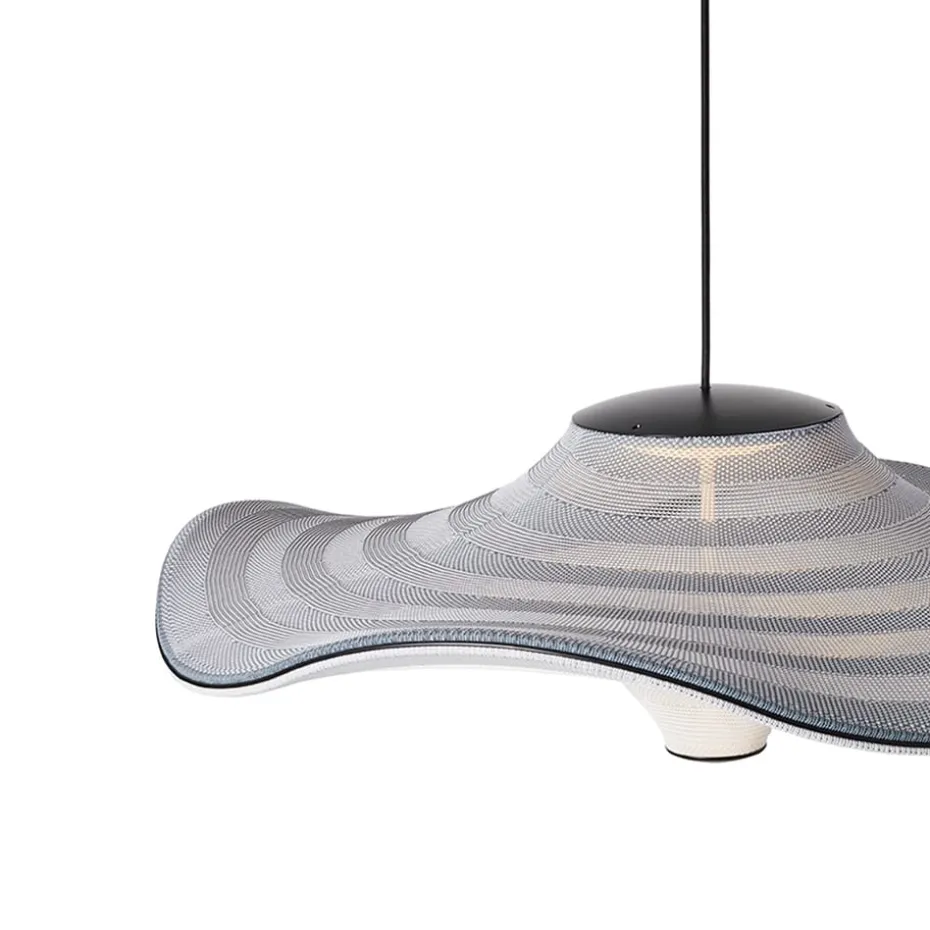 Die Flying Pendelleuchte Ø78 cm ist eine skulpturale Deckenlampe von Made By Hand. Der Lampenschirm ist aus Polyester gefertigt und die Basis aus Aluminium. Entworfen von Boris Berlin, scheint diese Lampe wunderschön in der Luft zu schweben, wenn sie hängt. Die Flying Serie bietet eine organische Form, die einen weichen Eindruck vermittelt.