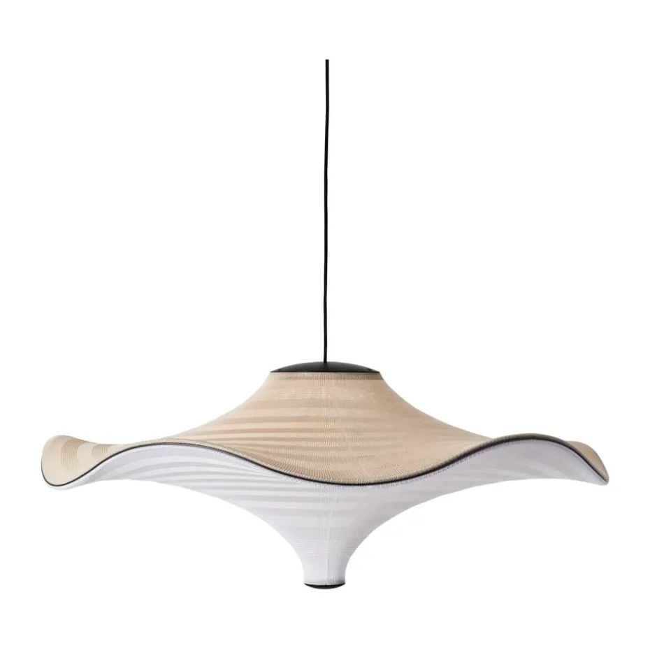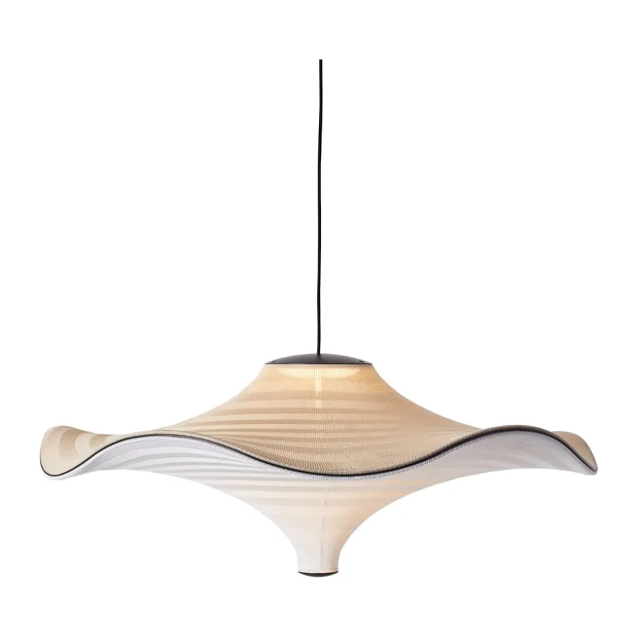 Die Flying Pendelleuchte Ø96 cm ist eine skulpturale Deckenleuchte von Made By Hand. Der Lampenschirm ist aus Polyester und die Basis aus Aluminium gefertigt. Entworfen von Boris Berlin, vermittelt diese Lampe aus der Flying-Serie einen sanften, organischen Eindruck und scheint wunderschön in der Luft zu schweben, während sie hängt.