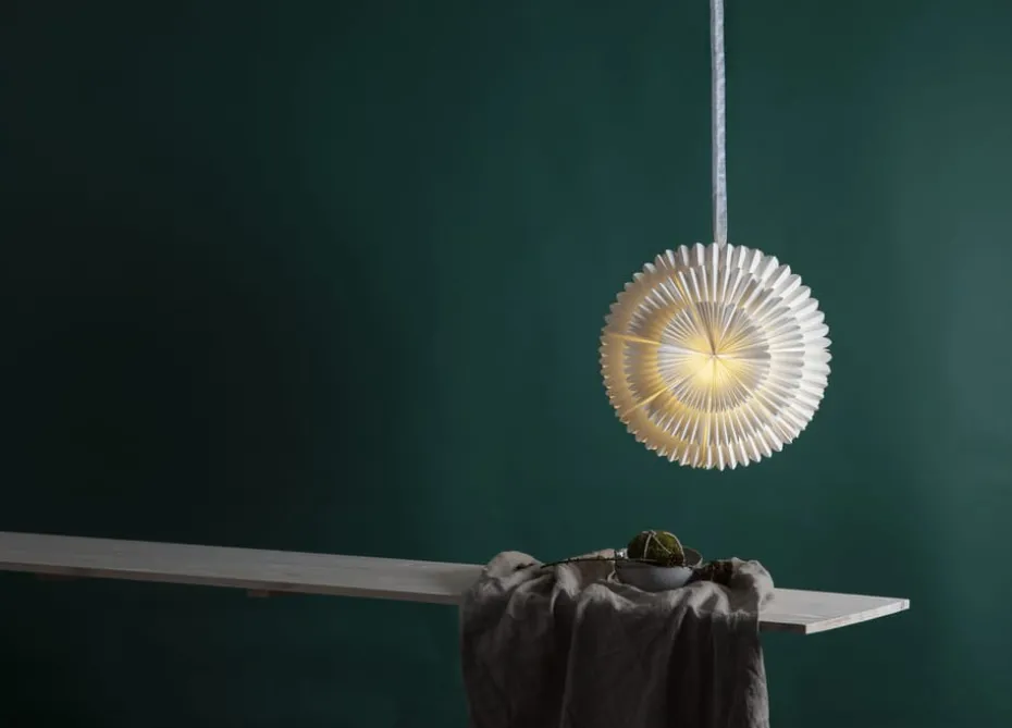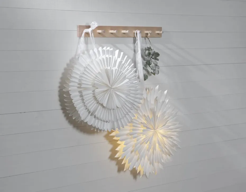 Der Frost Adventsstern Ø50 cm von Star Trading ist ein eleganter Papierstern, der aus drei Schichten wunderschön gefaltetem und geschnittenem Papier besteht. Die weich abgerundeten Laschen erzeugen ein schönes Zusammenspiel zwischen den beiden Schichten des Papiersterns. Ein elegantes Band ist inbegriffen, damit Sie den Stern im Fenster oder an der Wand aufhängen können. Der Crystal große Adventsstern sieht mit oder ohne Licht reizend aus und bringt einen gemütlichen Hauch von Weihnachtszauber in Ihr Zuhause. (automatische Übersetzung von www.nordicnest.se)