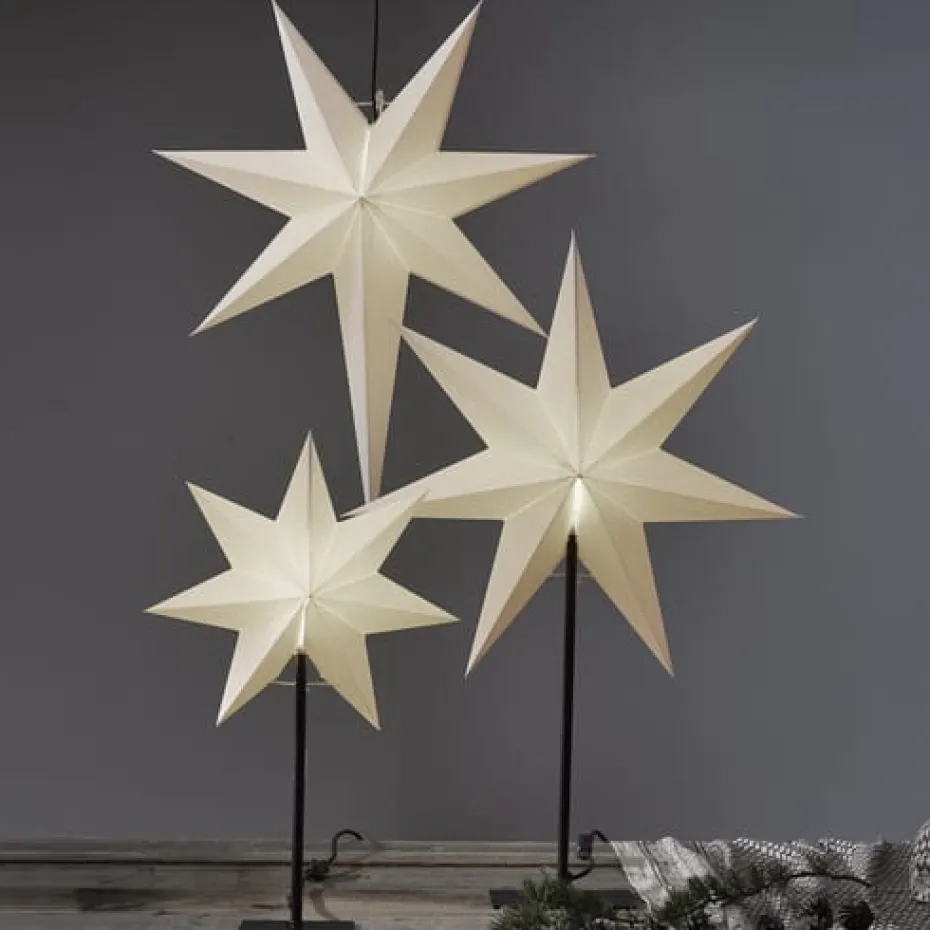 Der Frozen Adventstern der schwedischen Marke Star Trading wird inklusive Standfuß geliefert. Die skandinavische Tradition, während der dunklen Advent- und Weihnachtszeit einen beleuchteten Stern ins Fenster zu stellen macht den Anblick von Fensterfronten zu einem besonderen Licht-Erlebnis.