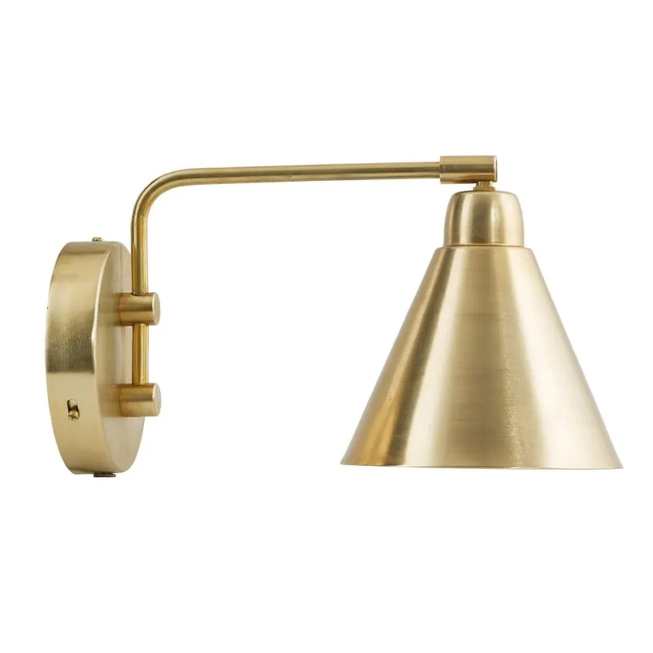 Die Wandleuchte Game von House Doctor fasziniert mit ihrer gediegenen, gebürsteten Messingoptik. Die Innenseite des Lampenschirms ist zwecks optimaler Lichtausbreitung weiß lackiert.
