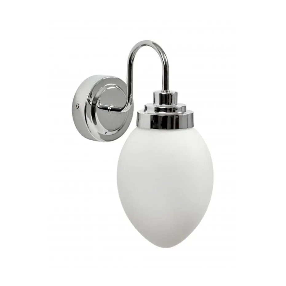 Schöne Badezimmerlampe aus verchromtem Metall und mit tropfenförmigem Glas. Lichtquelle nicht enthalten.